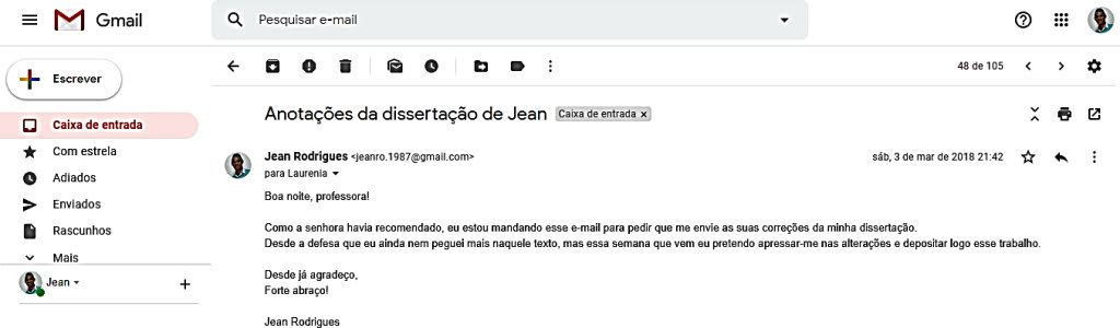 a) É a primeira vez que esse autor manda um e-mail para essa pessoa.